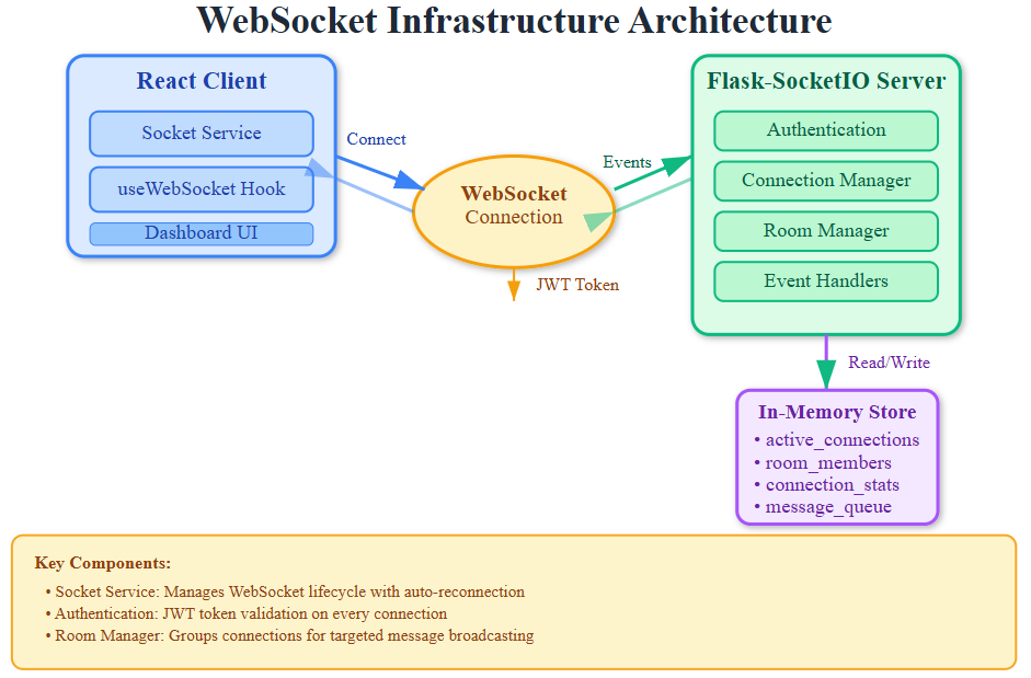Today we’re constructing the backbone of real-time communication—a production-grade WebSocket infrastructure using Socket.IO. We’ll build connection management, authentication flows, room-based message routing, automatic reconnection logic, and comprehensive error handling. By the end, you’ll have a resilient WebSocket server that maintains 10,000+ concurrent connections while gracefully handling network failures.