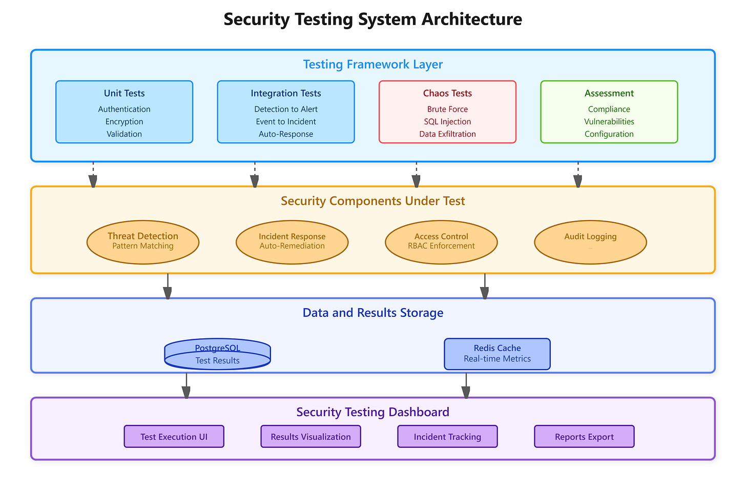Today we validate the complete security infrastructure built in Day 83. The goal is a comprehensive testing system that production teams at companies like Datadog and PagerDuty use to verify security systems hold up under real threat conditions.