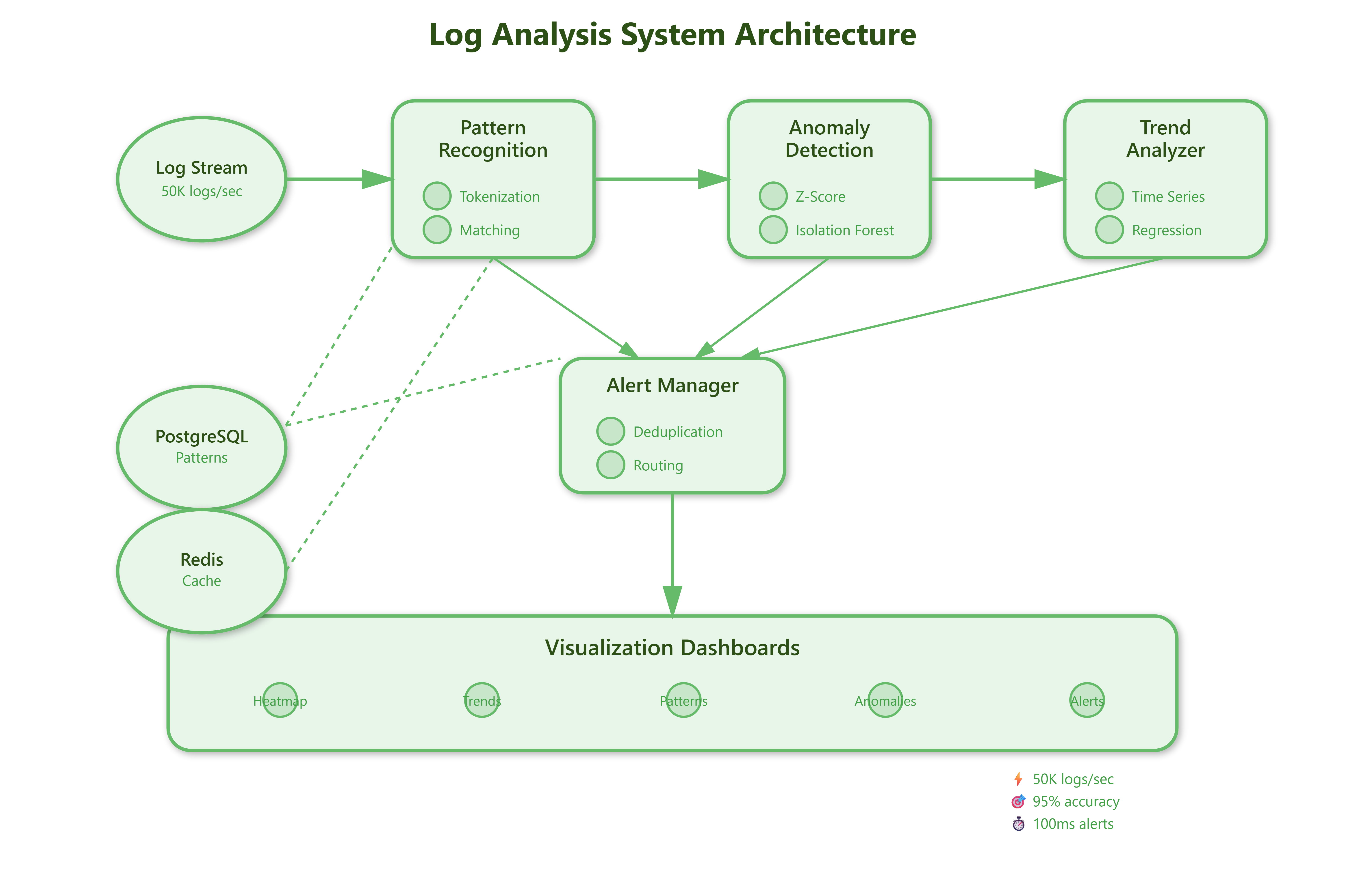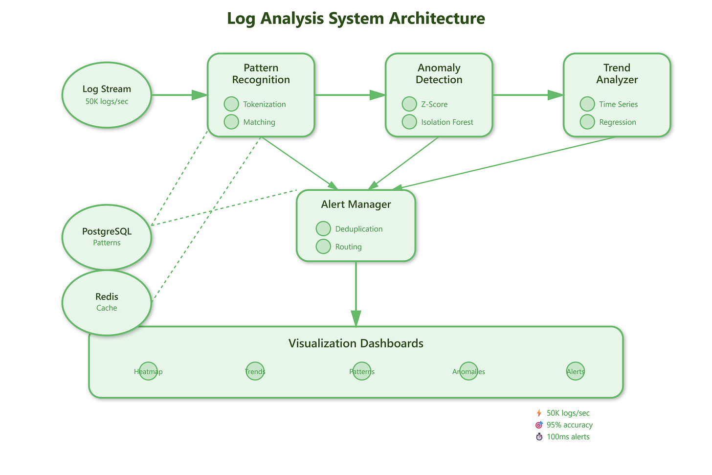 Today we’re building a production-grade log analysis engine that transforms raw log data into actionable intelligence. We’ll implement pattern recognition to identify recurring issues, anomaly detection to catch unusual behavior before it becomes critical, trend analysis to understand system health over time, automated alert generation that knows when to notify the right people, and real-time visualization dashboards that make complex data comprehensible at a glance.